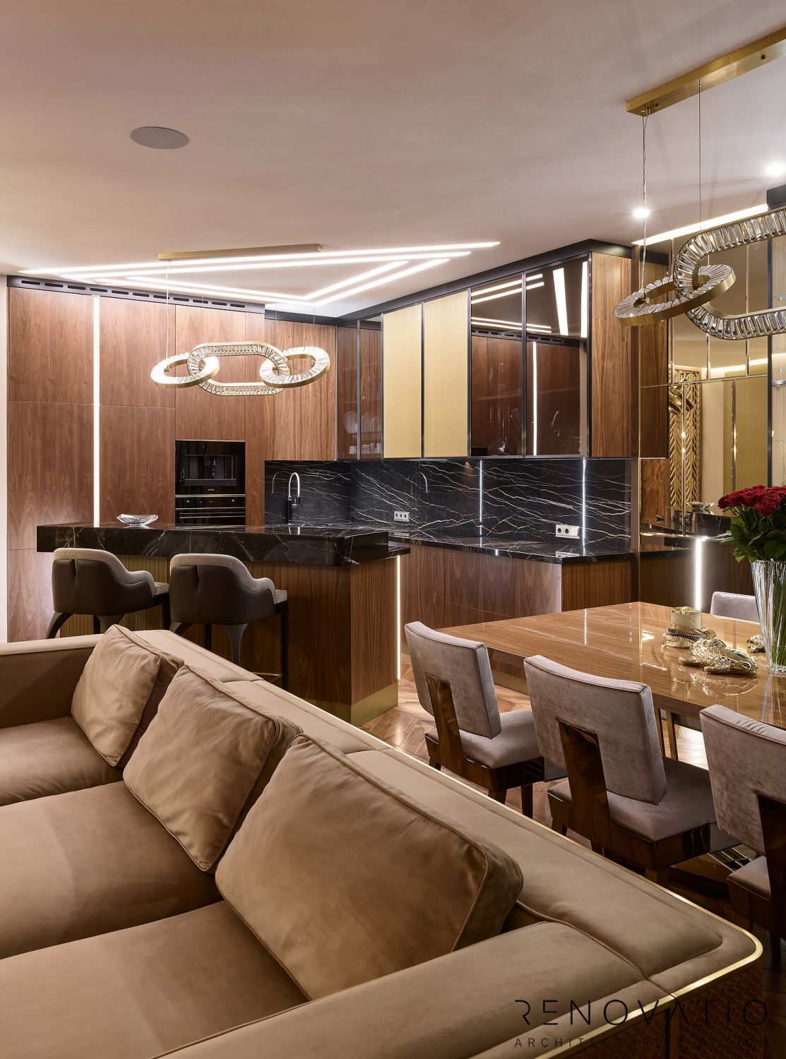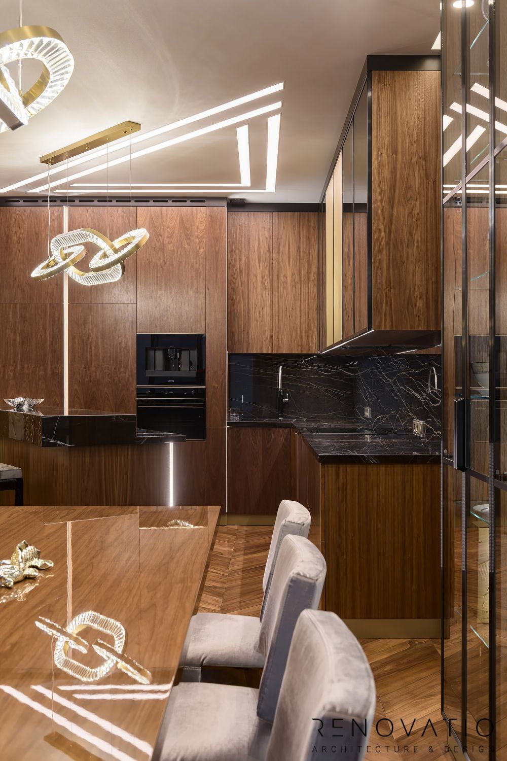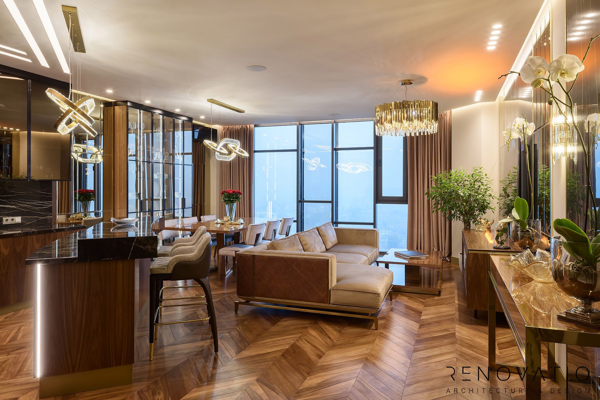 Apartments of 1615 sq.ft are made in a modern style. The project was designed according to the wishes of customers, where we took into account their usual way of life.