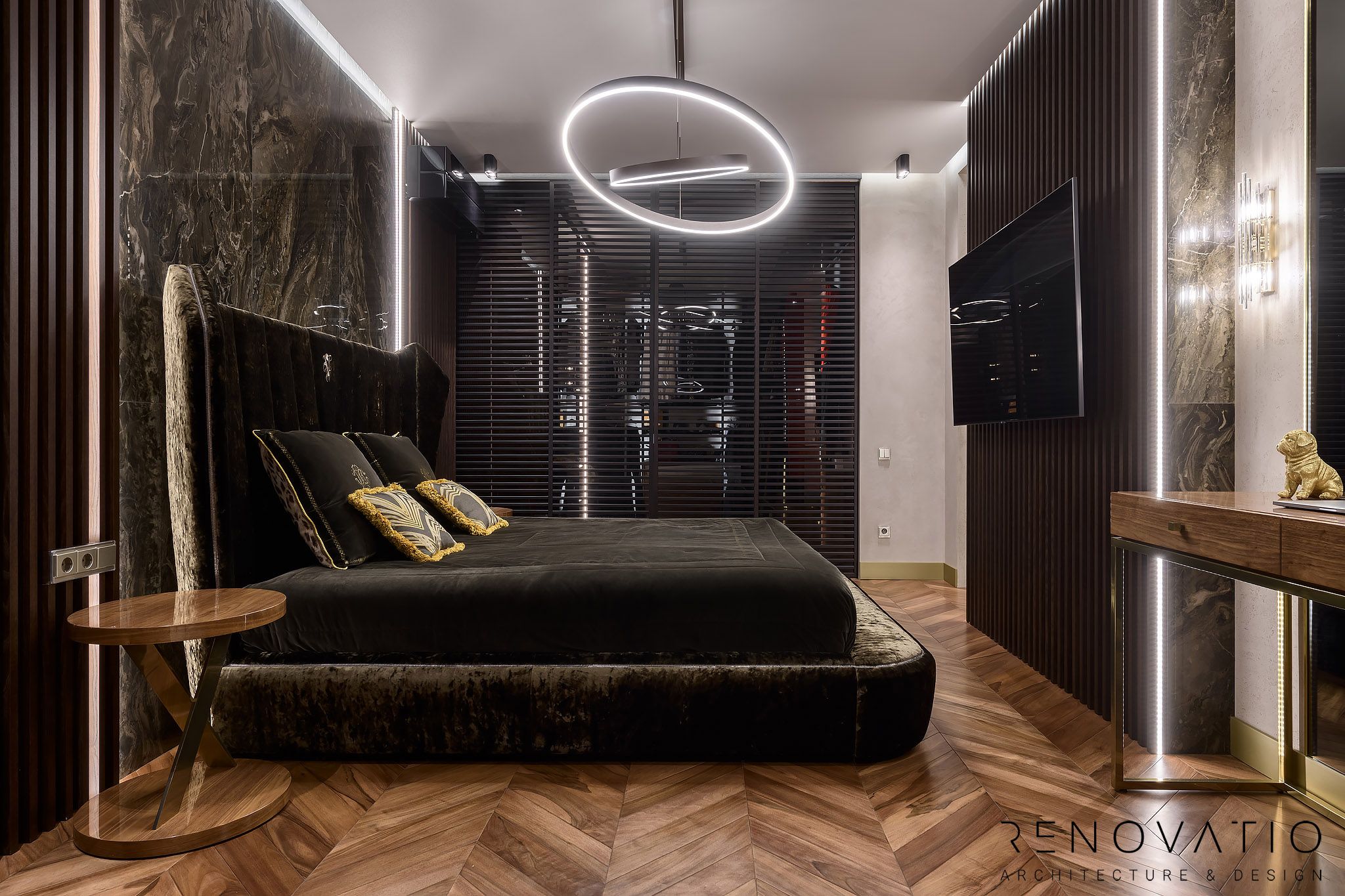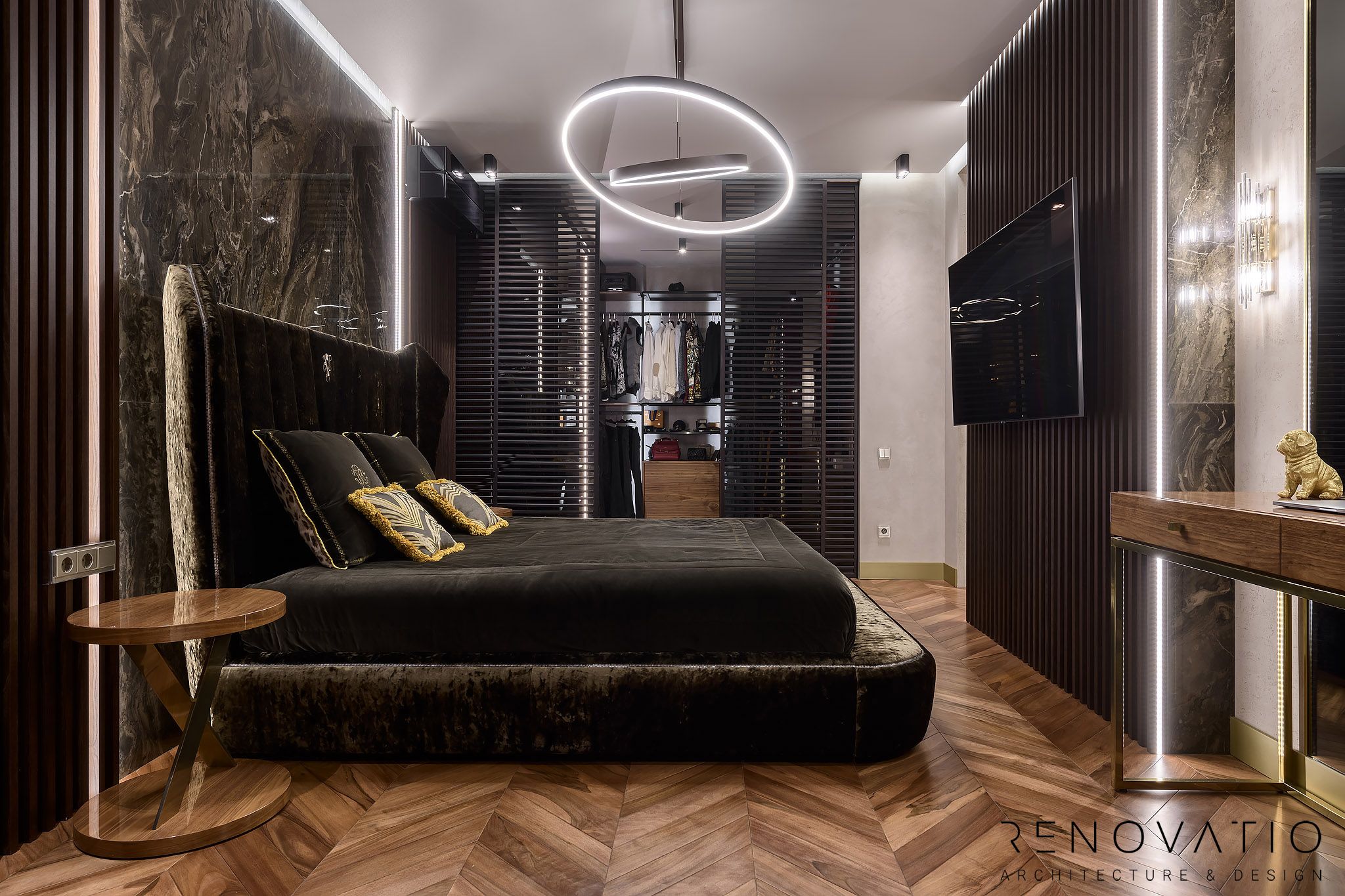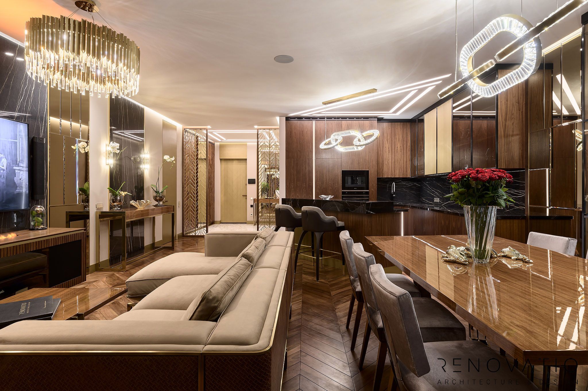 Apartments of 1615 sq.ft are made in a modern style. The project was designed according to the wishes of customers, where we took into account their usual way of life.