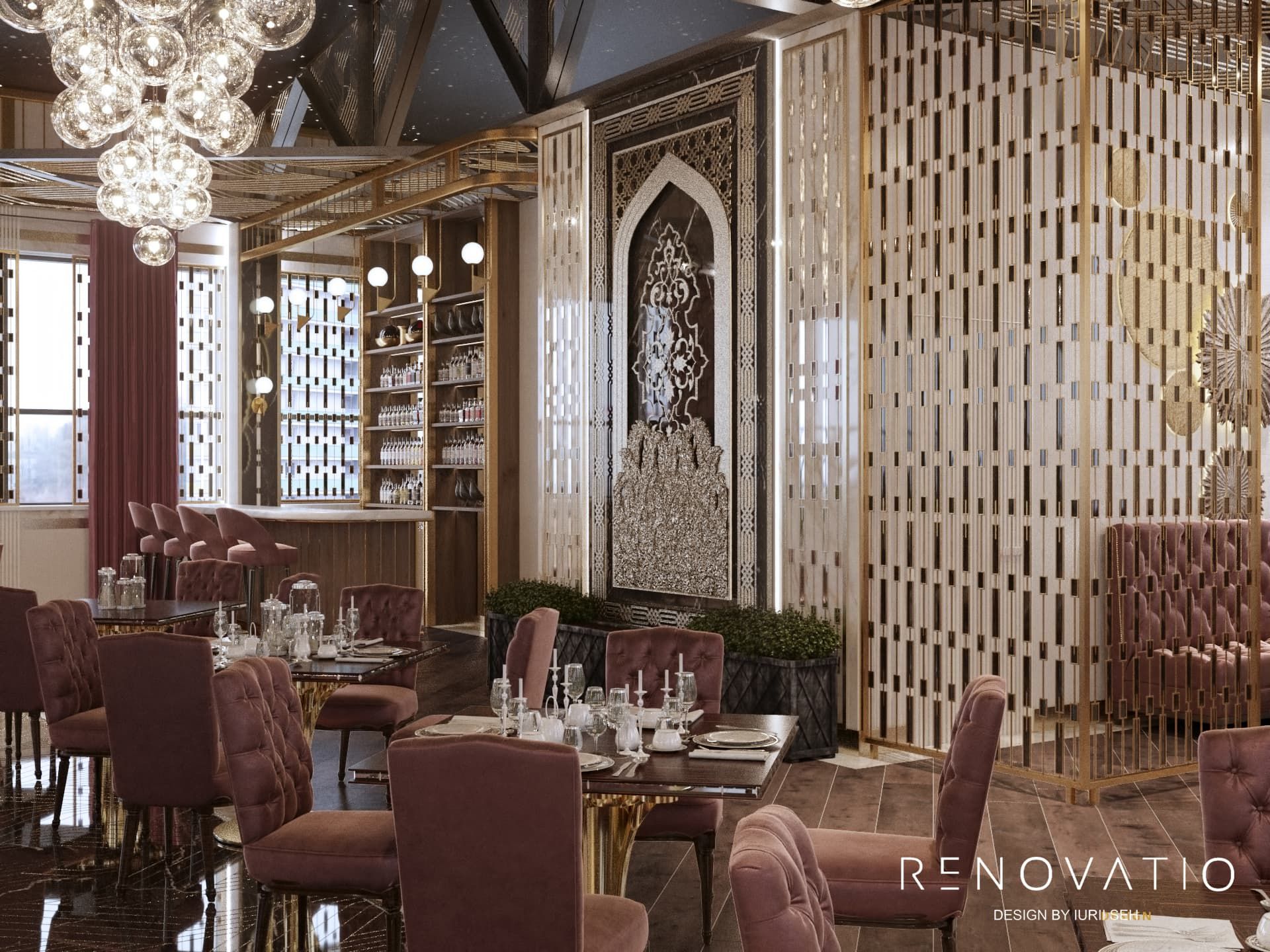 The muted color scheme of the hall relaxes and adjusts for a pleasant pastime, while bright accents and original finishes bring a touch of variety to the interior. That is why we used calm beige and brown shades as a base and added deep burgundy as an accent.