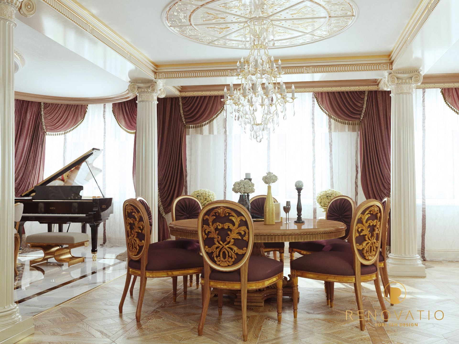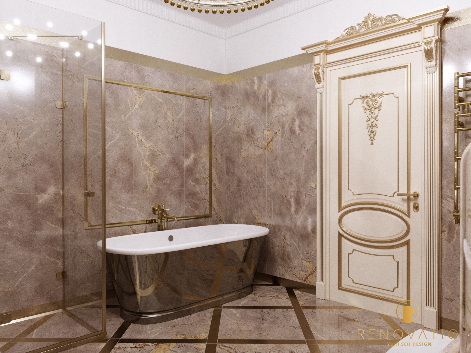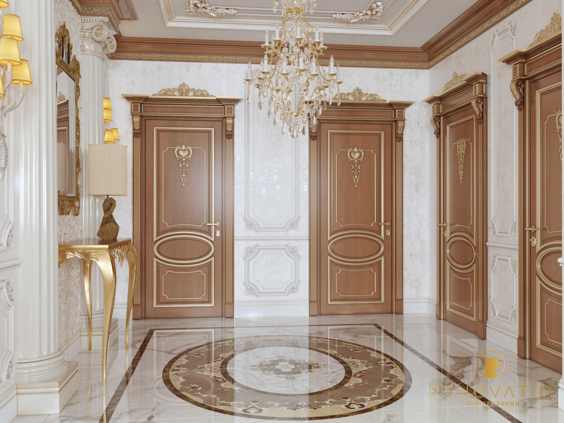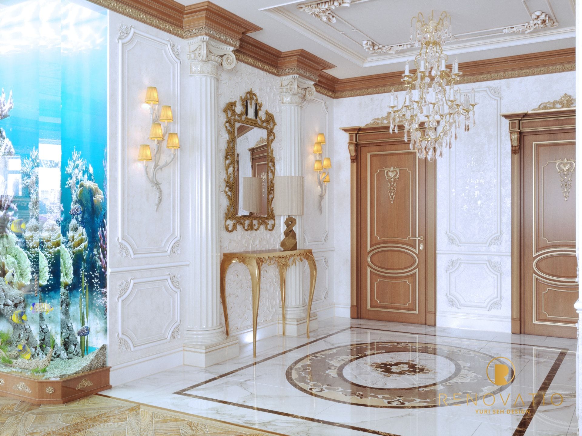 No unnecessary elements, restrained decor, decorative stucco molding and marble - all this is about the project of a 4844 sq.ft house in a classic style.
