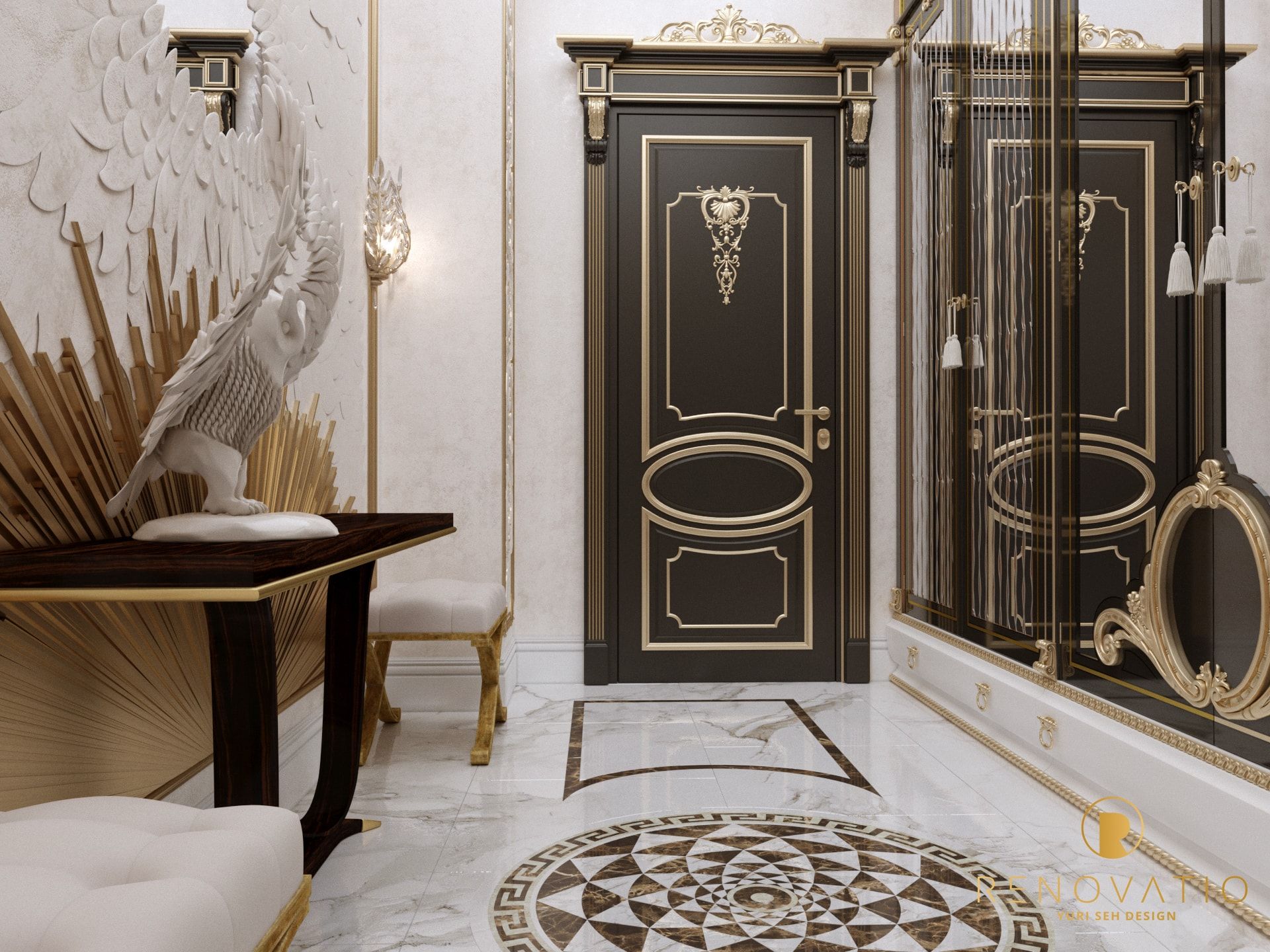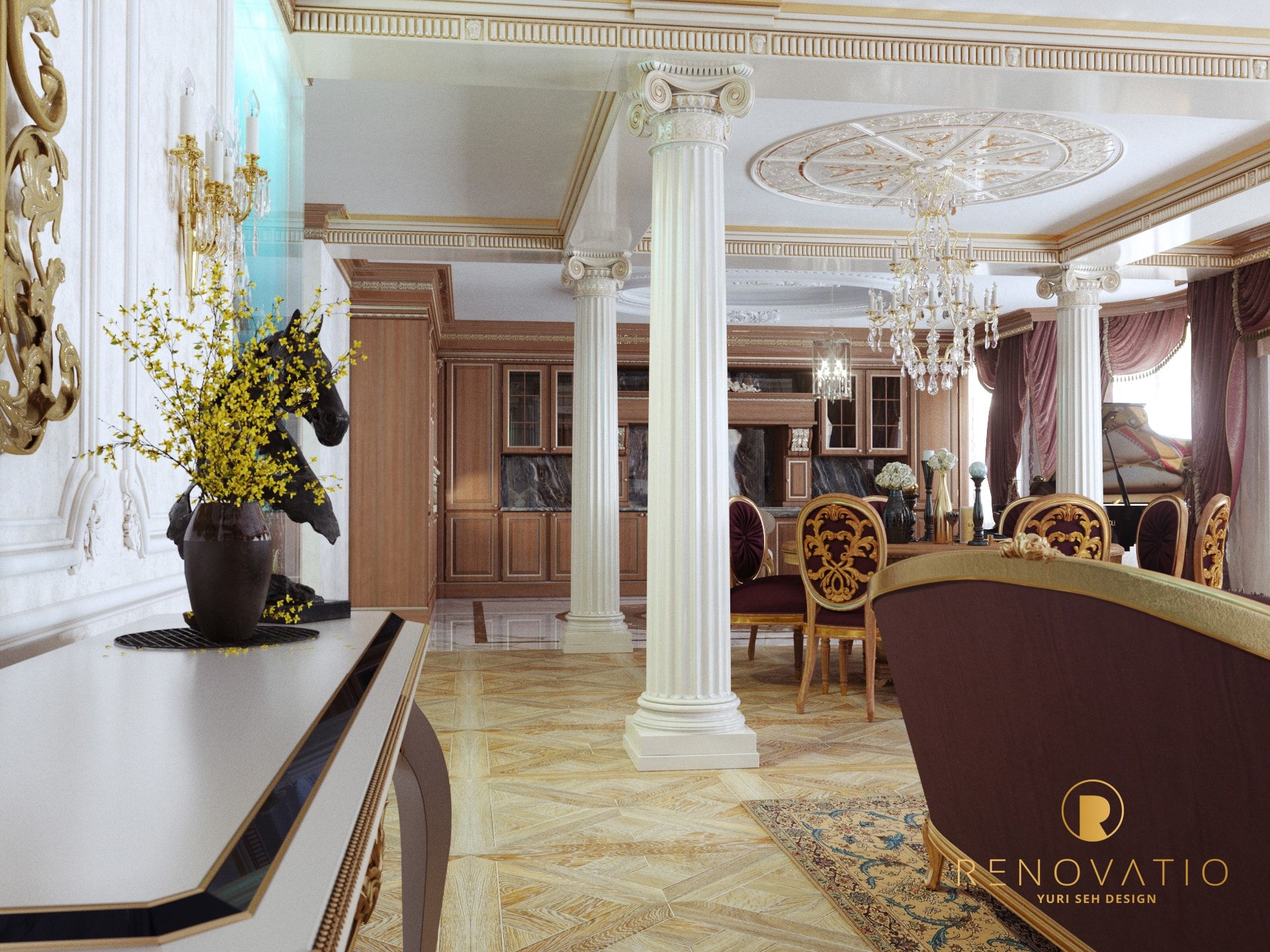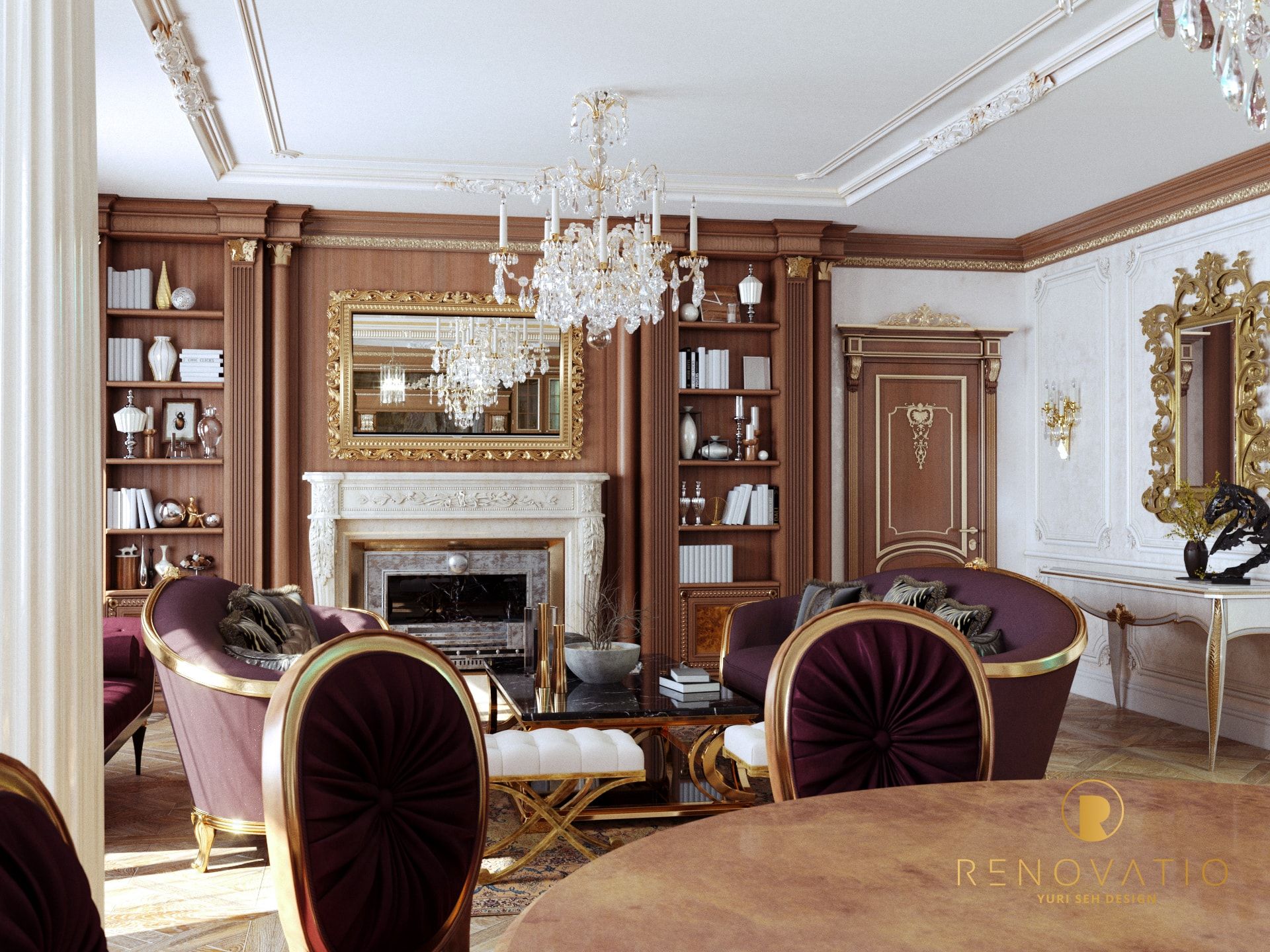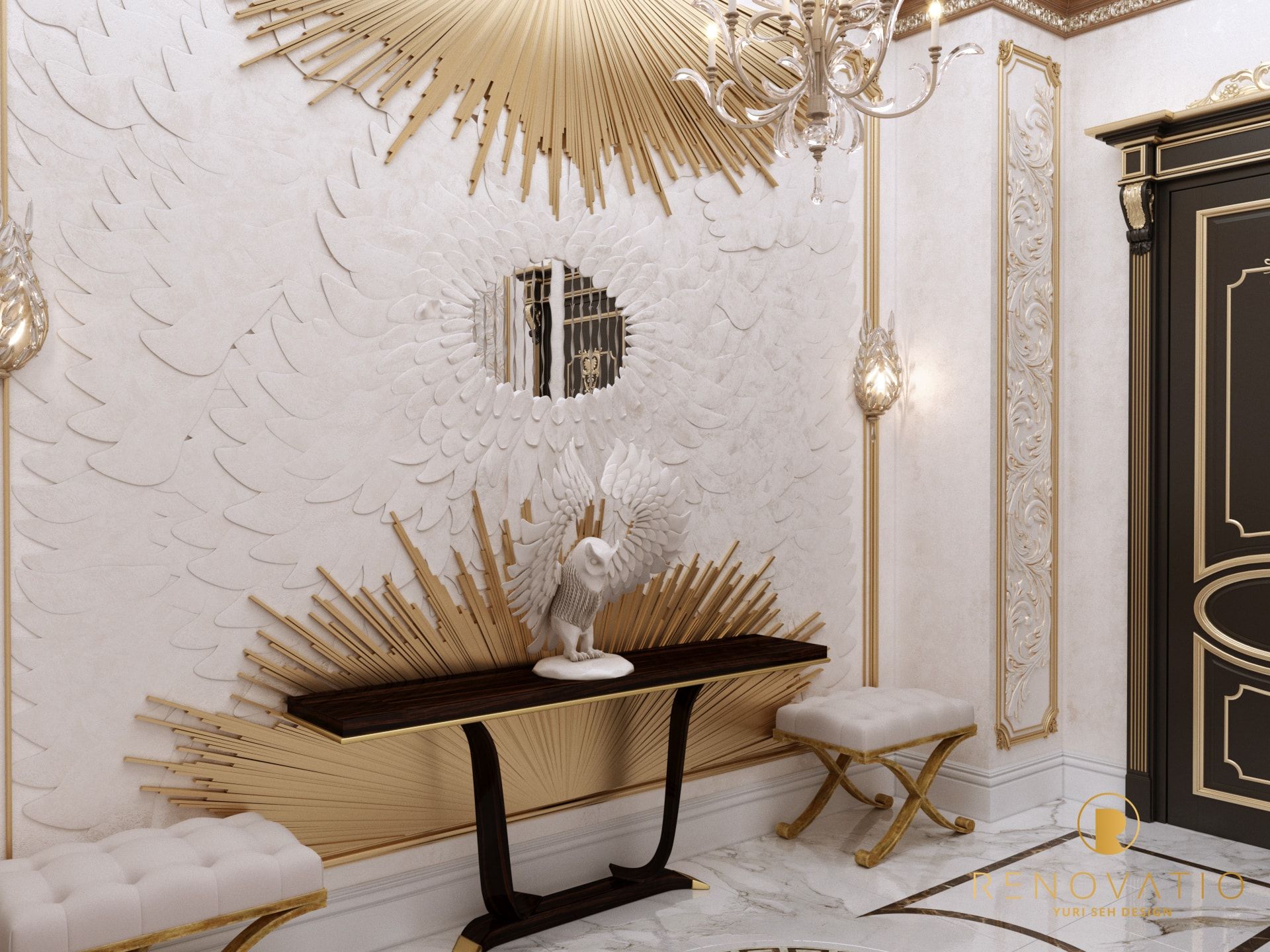 No unnecessary elements, restrained decor, decorative stucco molding and marble - all this is about the project of a 4844 sq.ft house in a classic style.