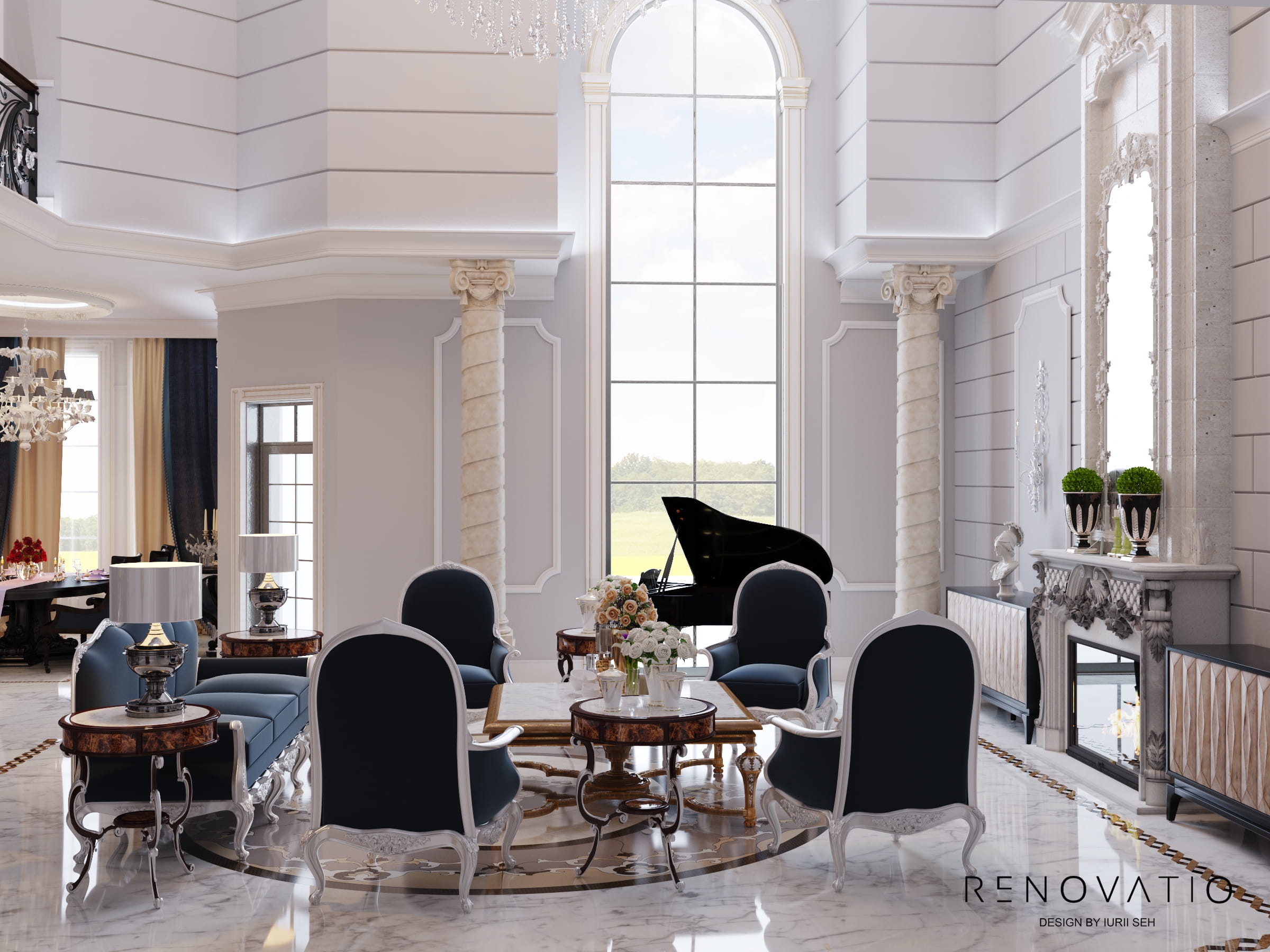 Refined France with all textures and shapes is about this project. The combination of noble dark blue and crystal cool white is the main color concept.