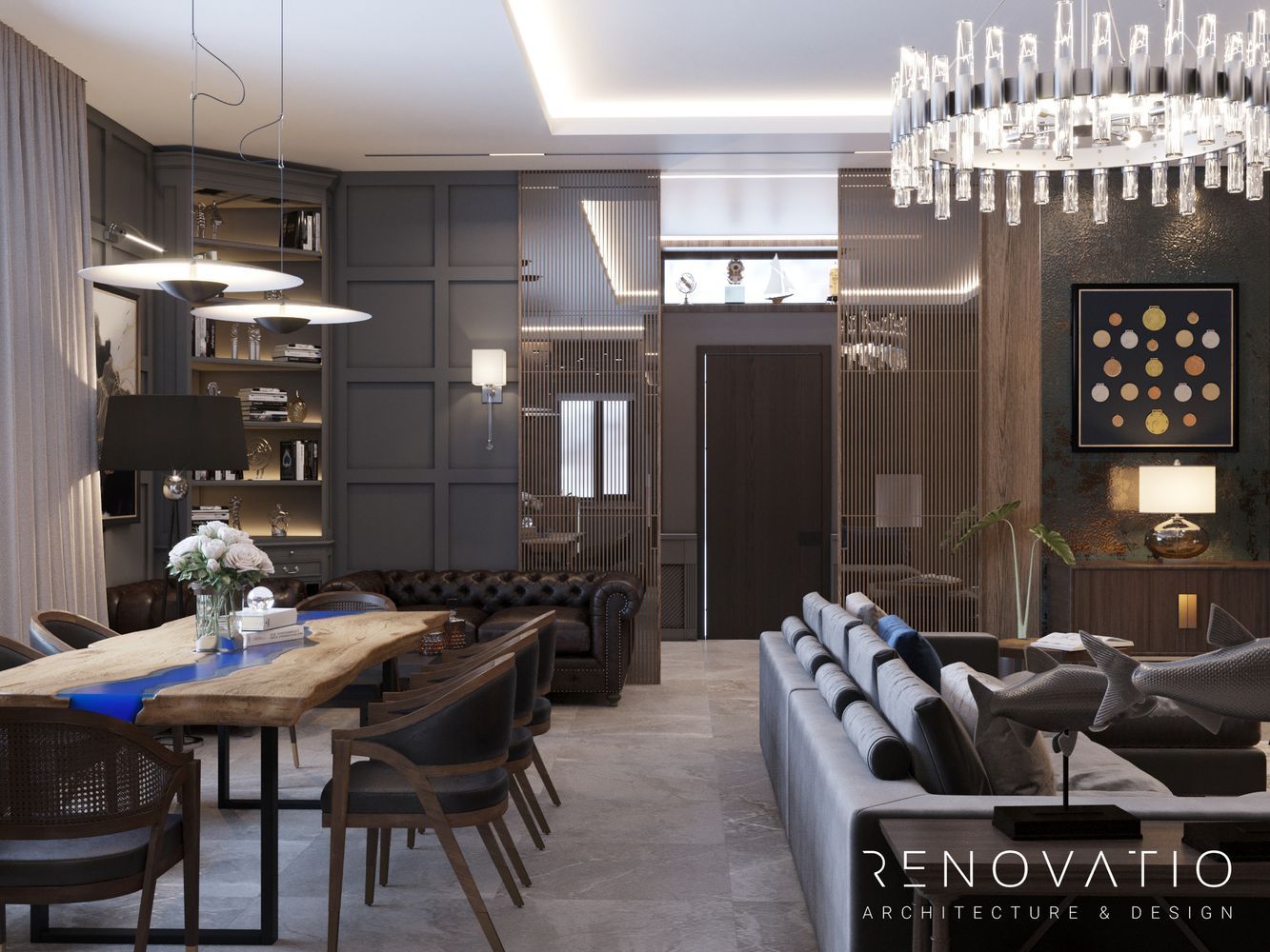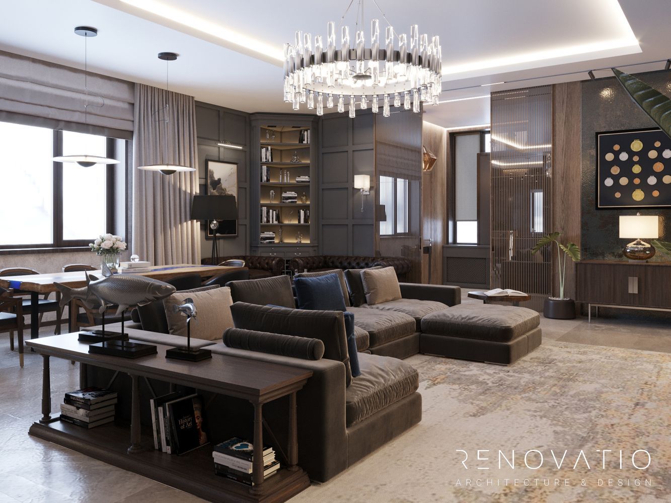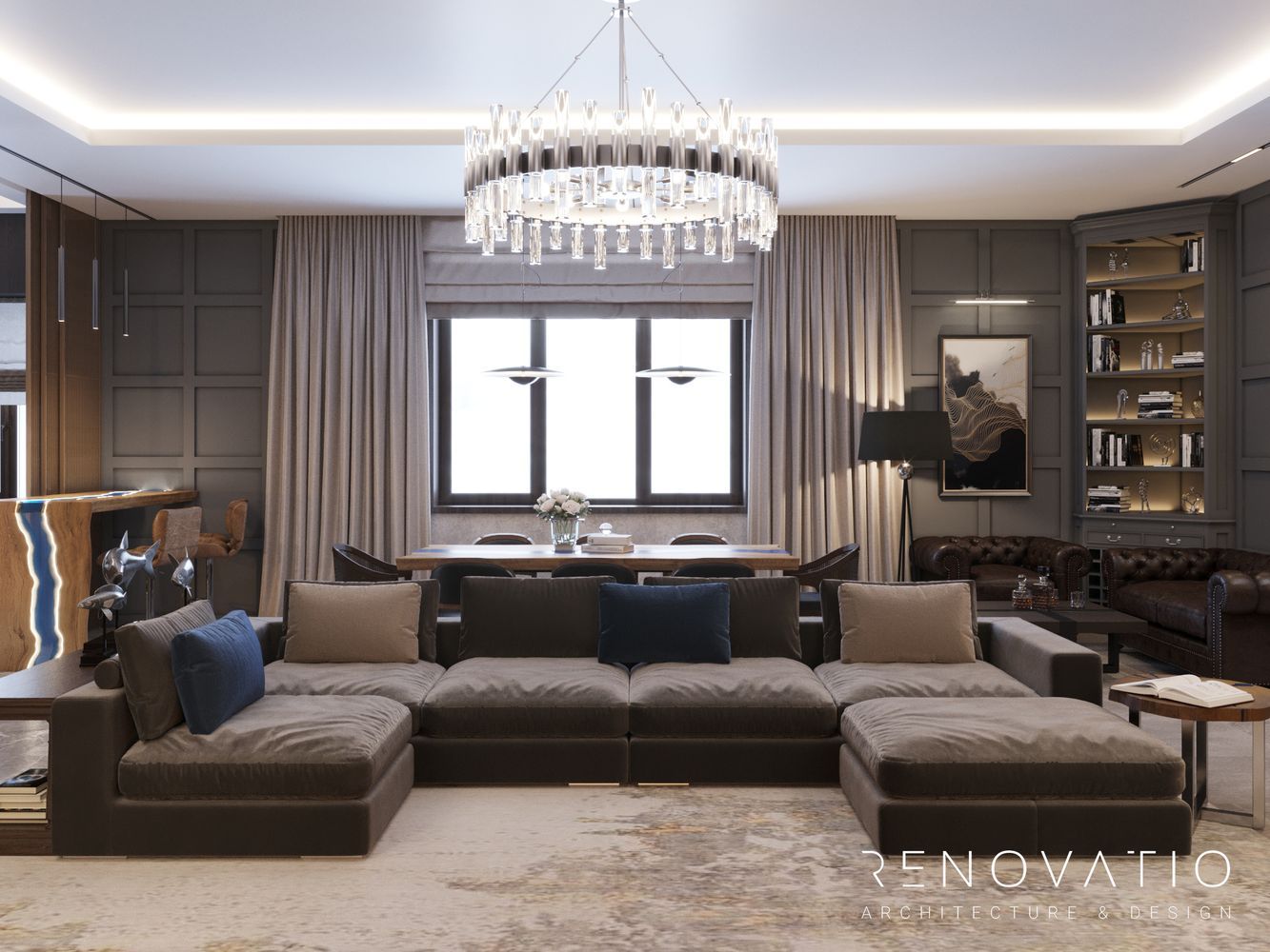 The project task was unusual. A married couple loves slightly different styles: loft and formal classics. That is why brutal fusion has become the ideal solution. This is a very subtle interweaving of neoclassicism and modern solutions.