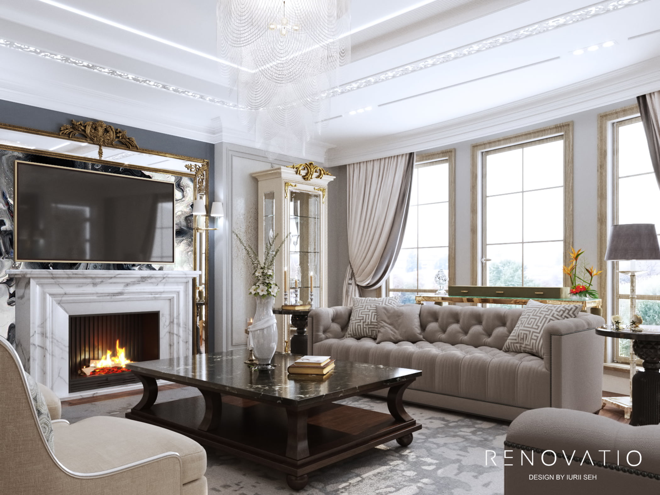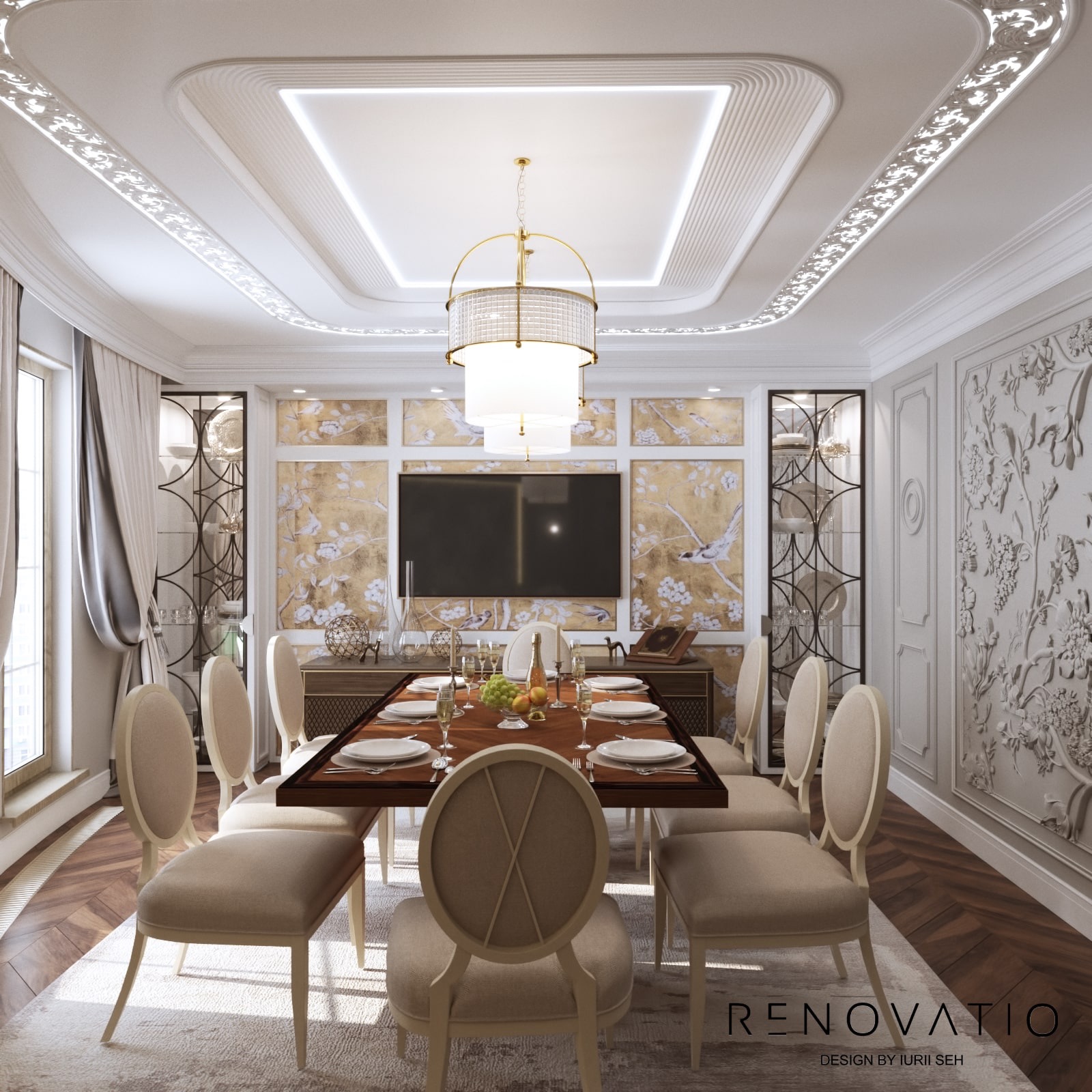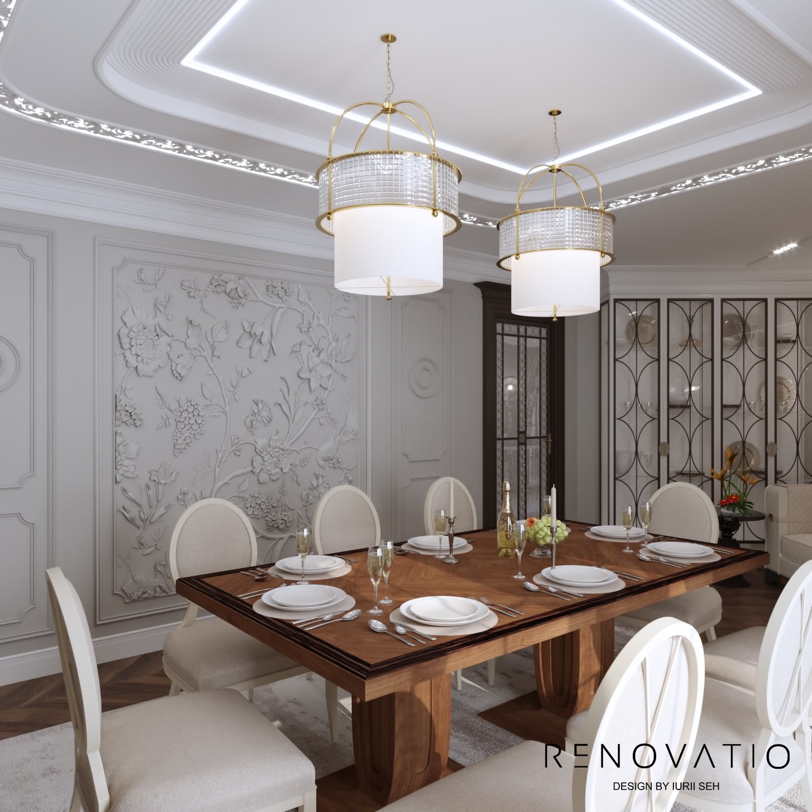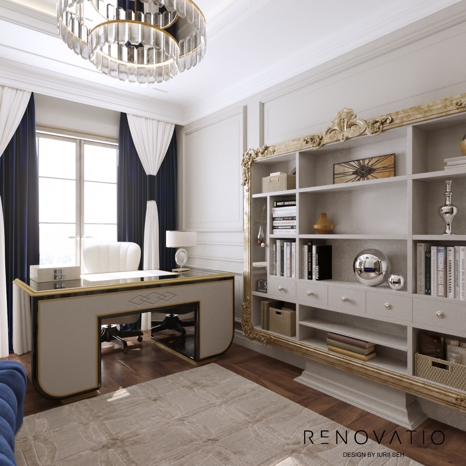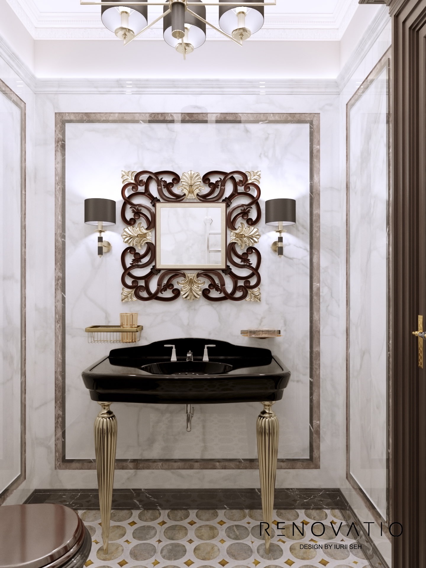 Bathrooms are small, but due to mirrors we were able to increase the visual space. The stucco molding on the entire wall has become an accent in the living room. It complements the art deco style, due to its location opposite the window, it is always noticeable. The design combines elements of neoclassical architecture with modern motives in an original way.