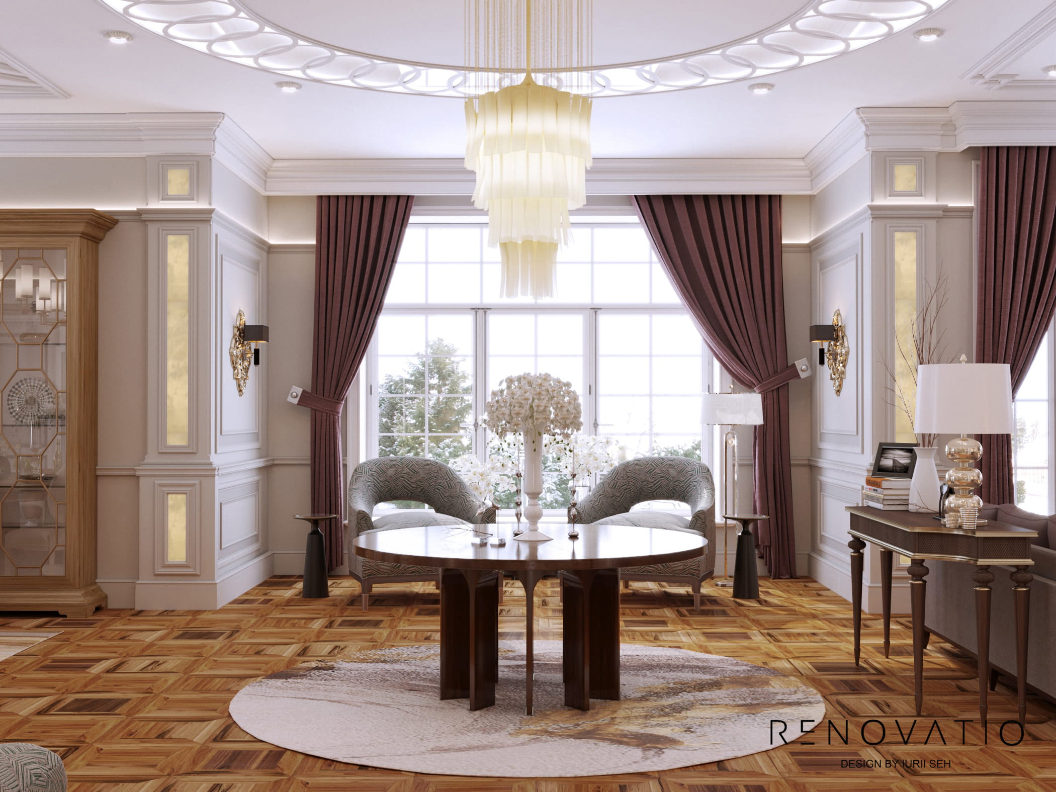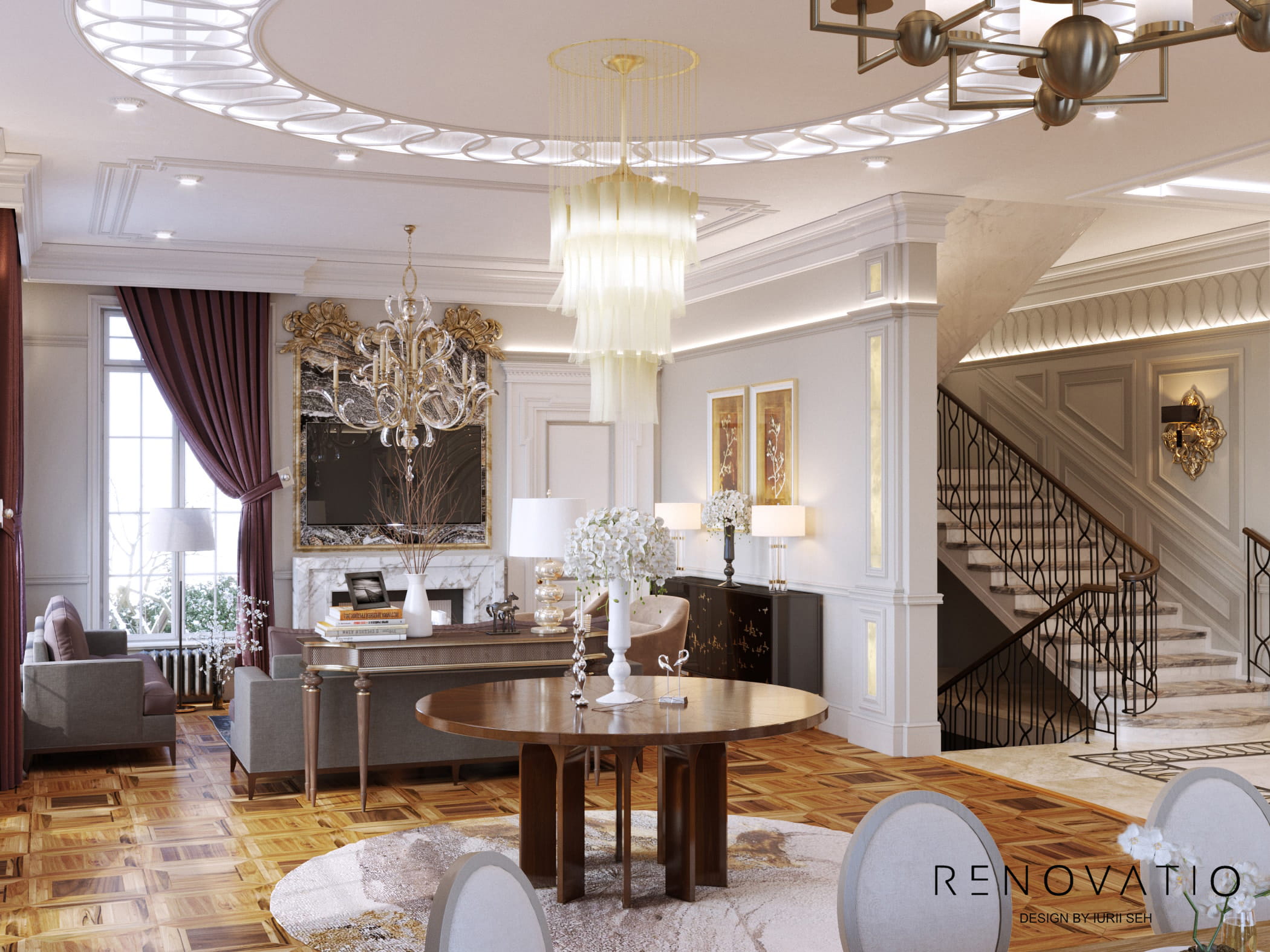 The interior of the house in the Neoclassical style is suitable for confident people who love clear shapes and quality, but without excessive pomp and whimsy. This design was chosen by the owners of a spacious house of 9688 sq.ft.