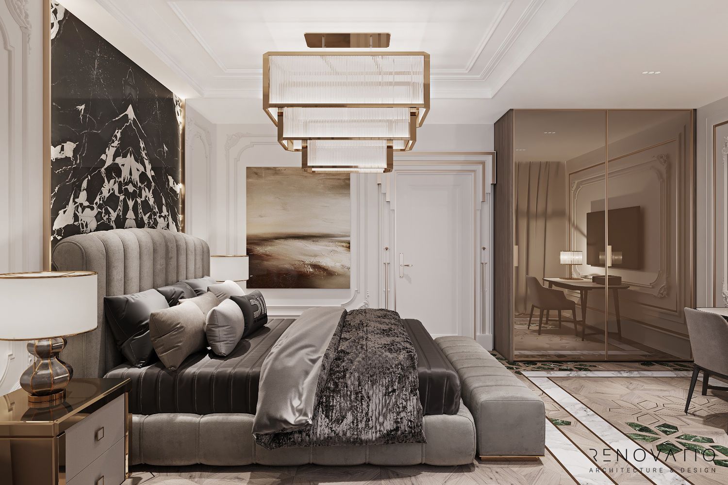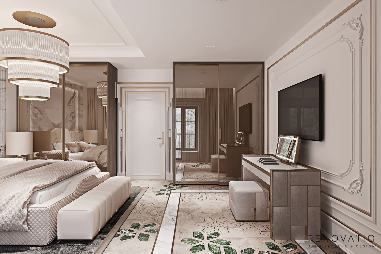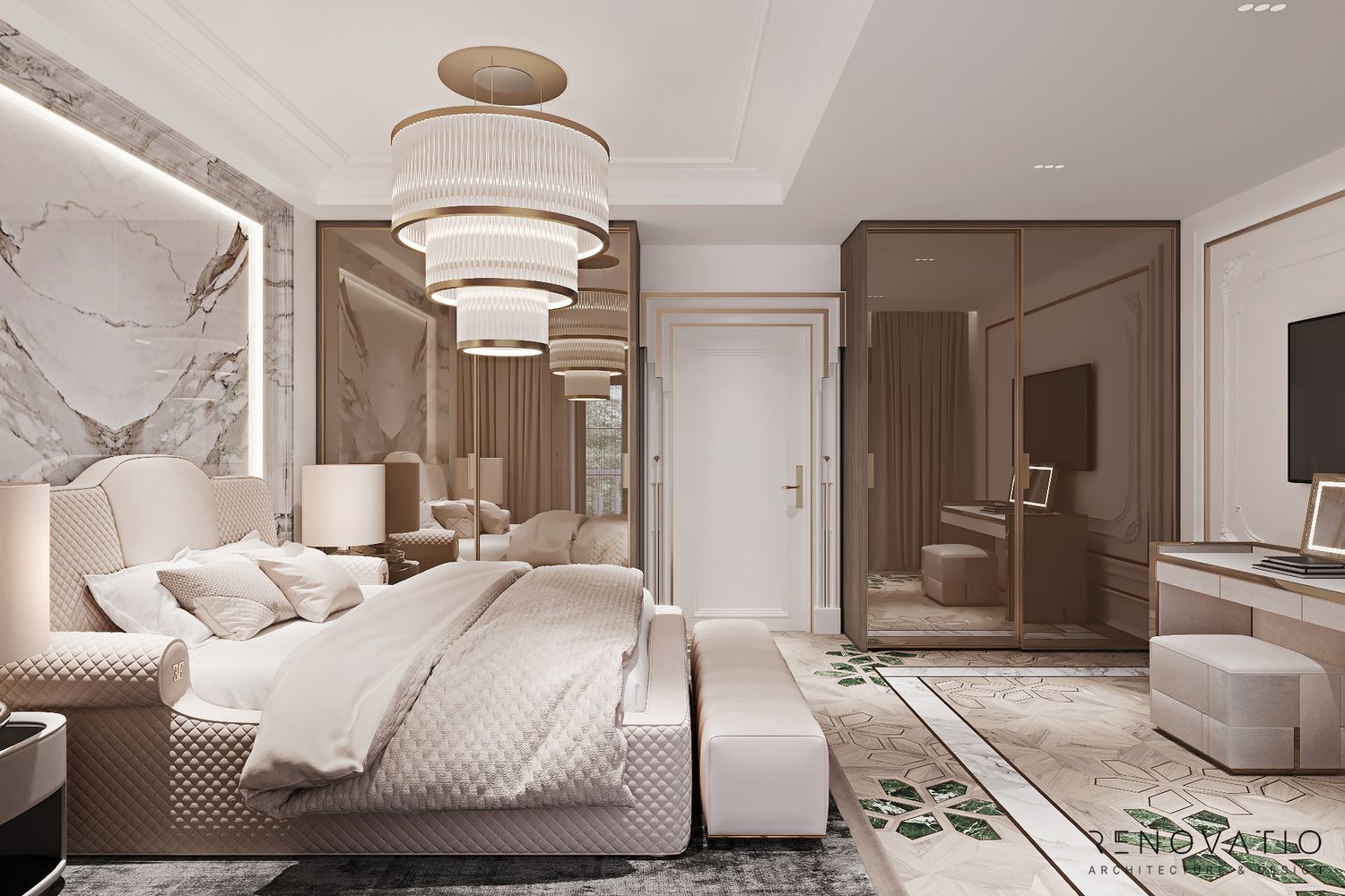 The bedrooms impress with elements of classic luxury. Huge bronze chandeliers, huge soft beds with carved shapes, the luxury of ornamental flooring fascinate, and make you stay in the room as long as possible.