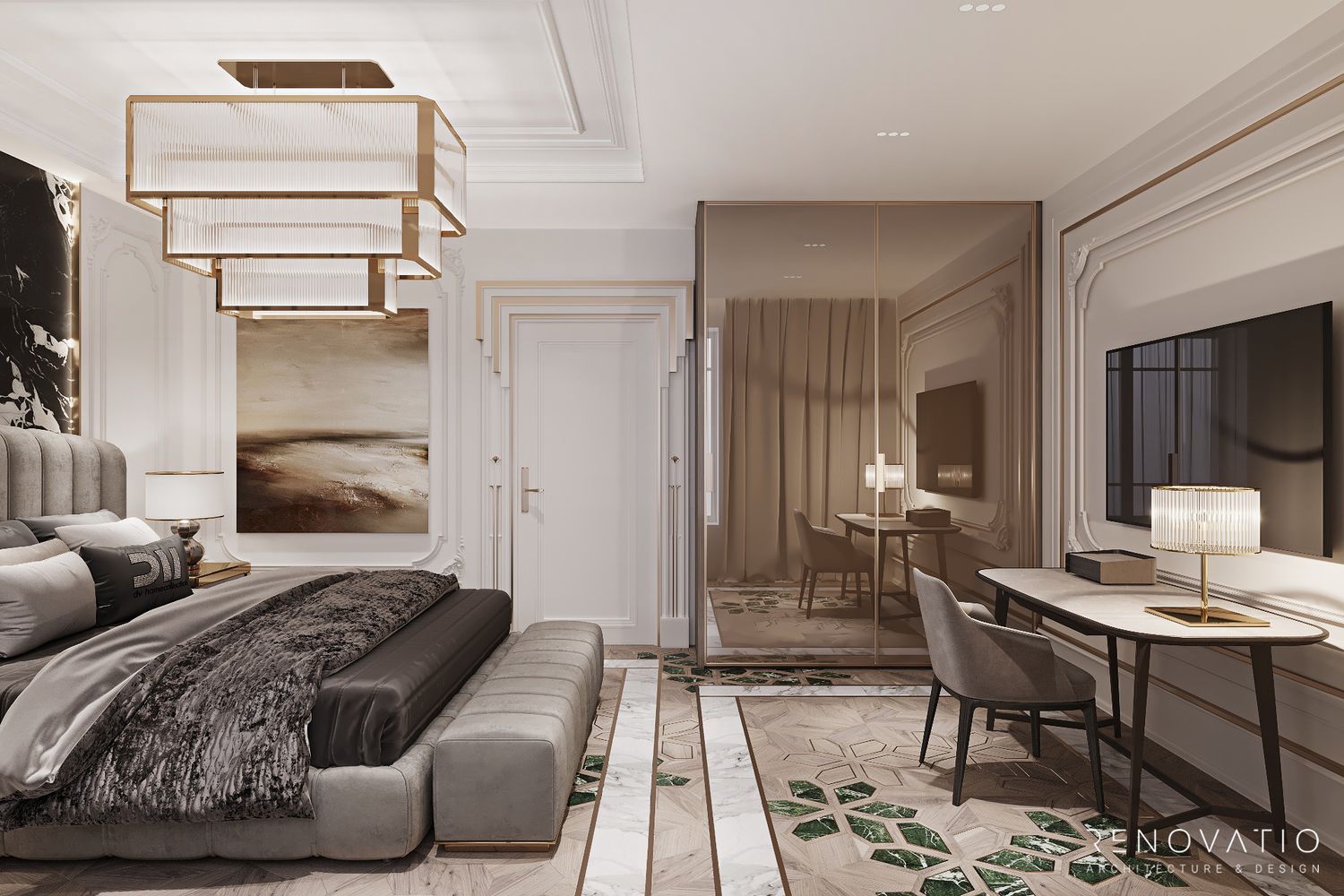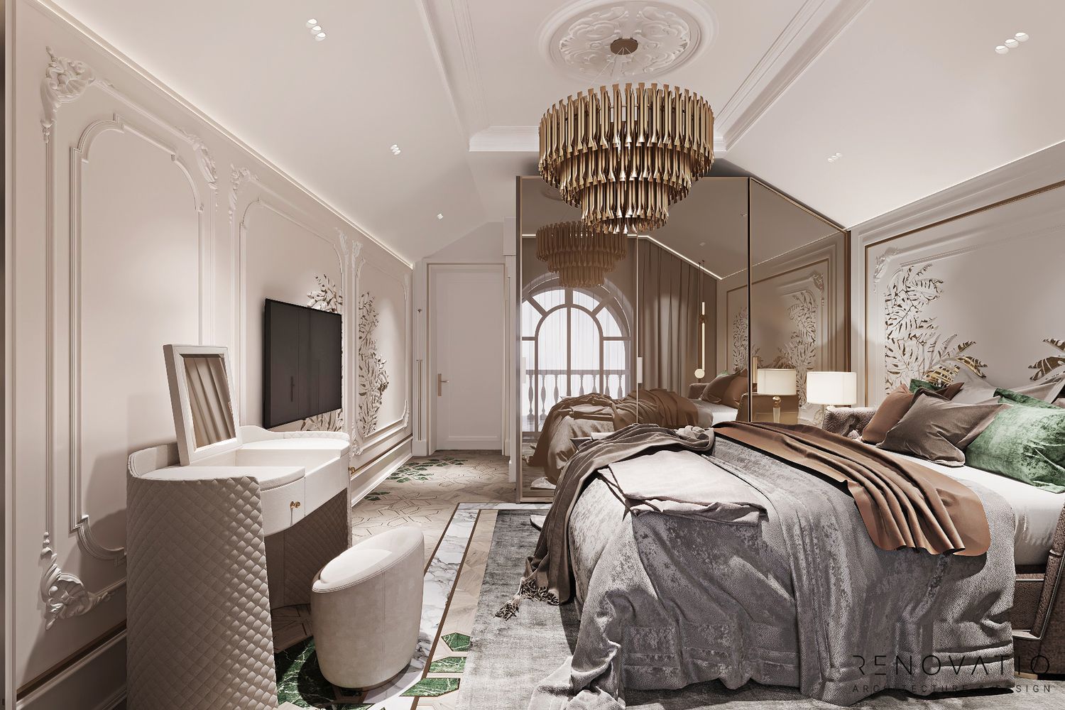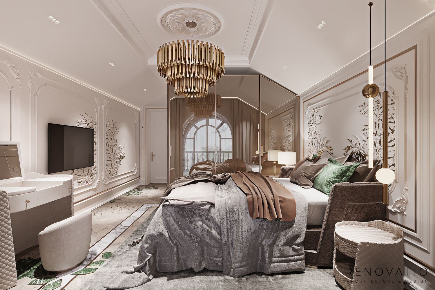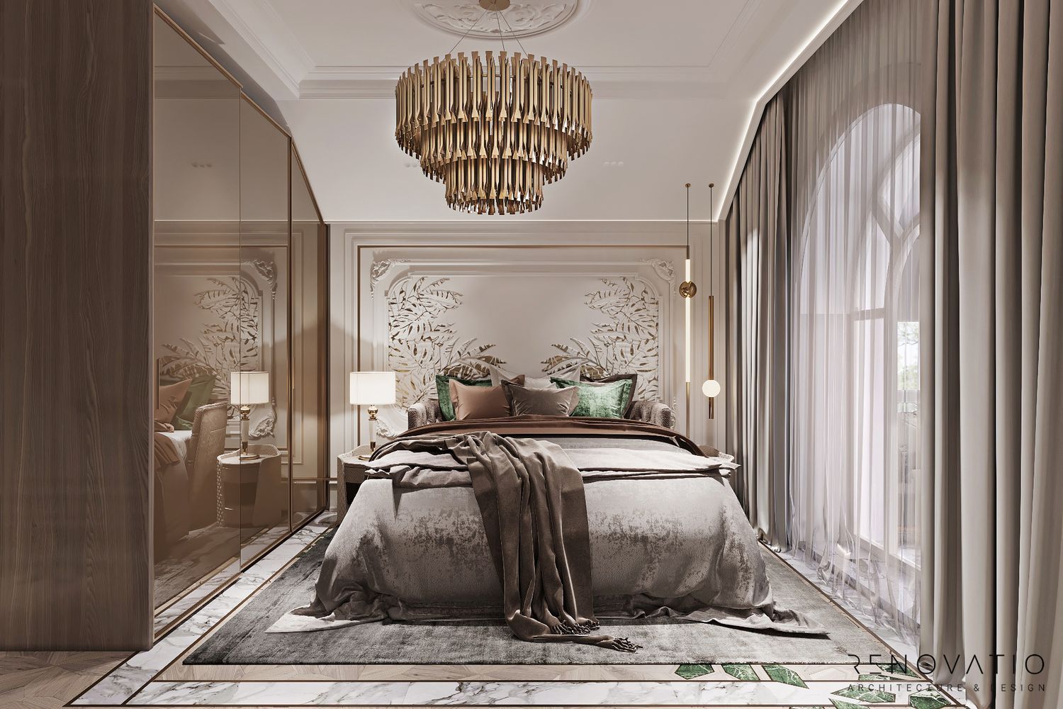 The bedrooms impress with elements of classic luxury. Huge bronze chandeliers, huge soft beds with carved shapes, the luxury of ornamental flooring fascinate, and make you stay in the room as long as possible.