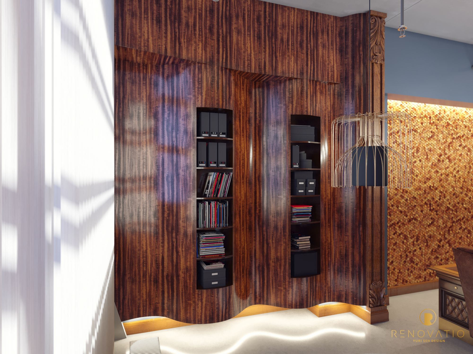 In the office, it was possible to harmoniously combine various types of material, ergonomic shapes and visual lightness. Fusion is a laconic style where you can combine various textures.