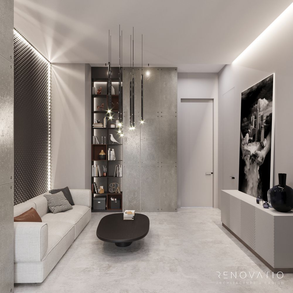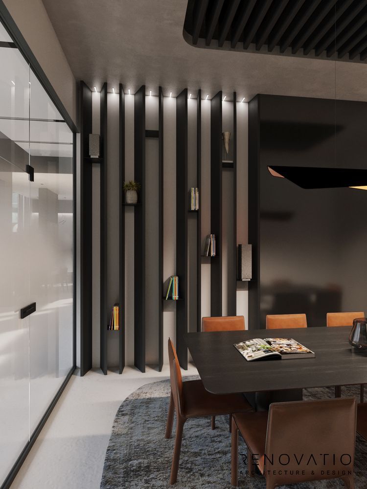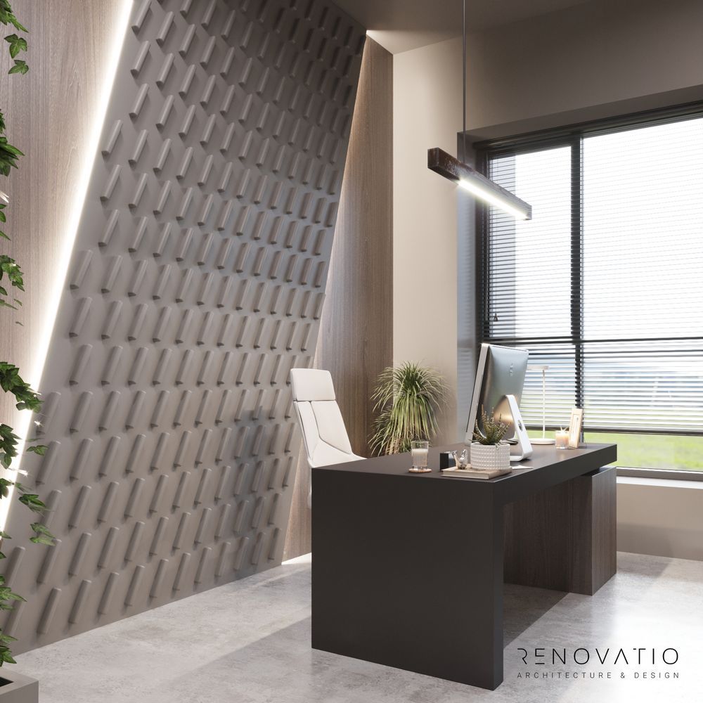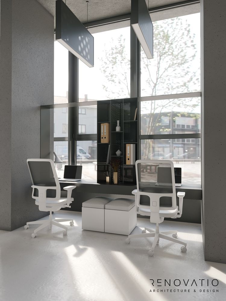 The restrained style is permeated with conceptual solutions that are dictated by the shape of the room itself. Based on various shades of gray. It does not distract, maximizes attention and improves the self-organization of employees.