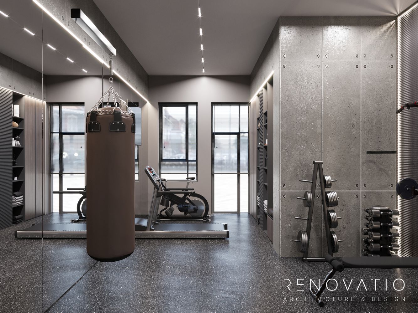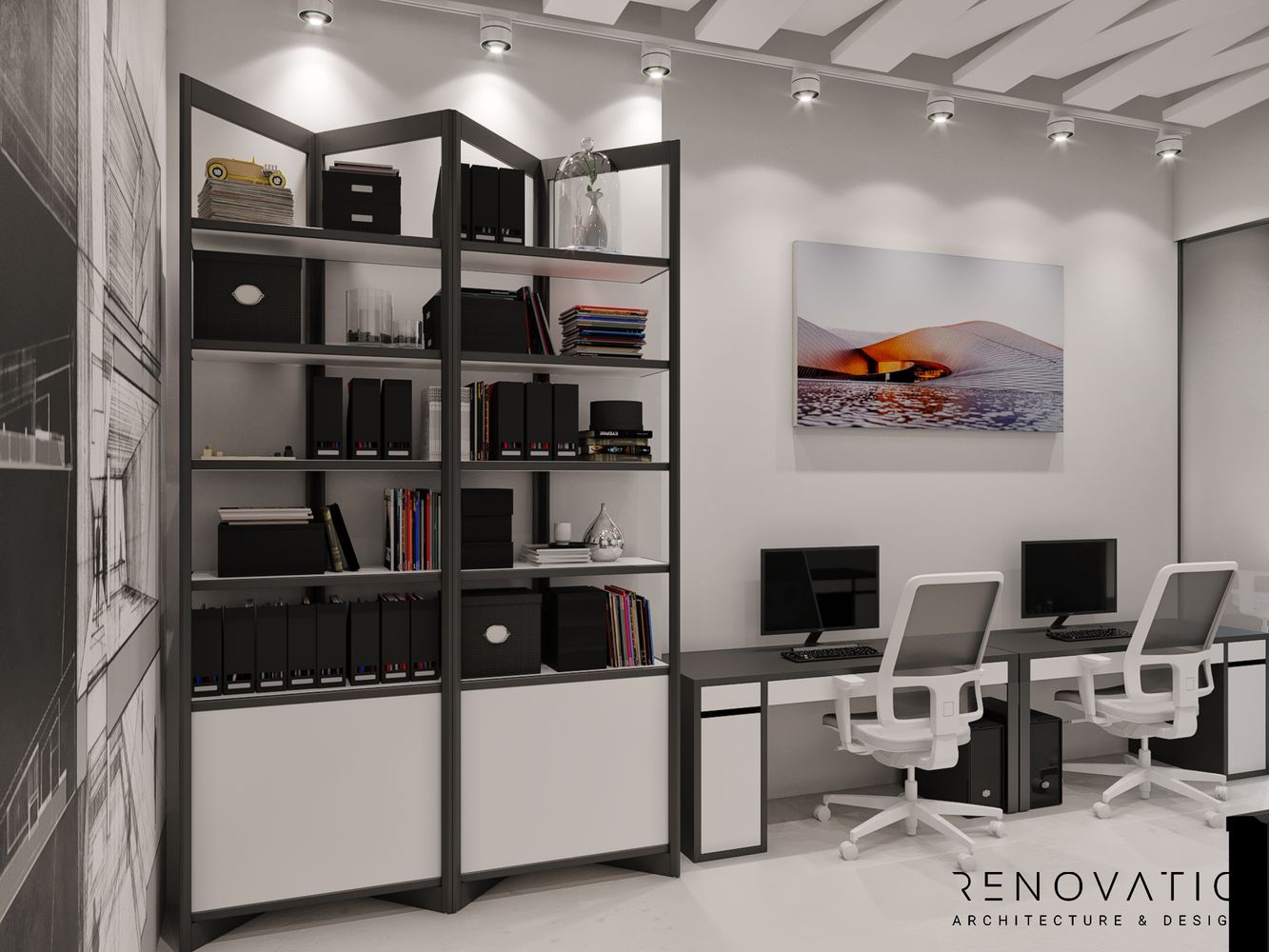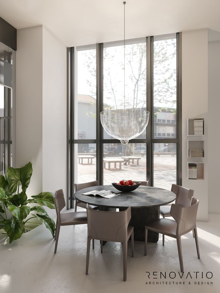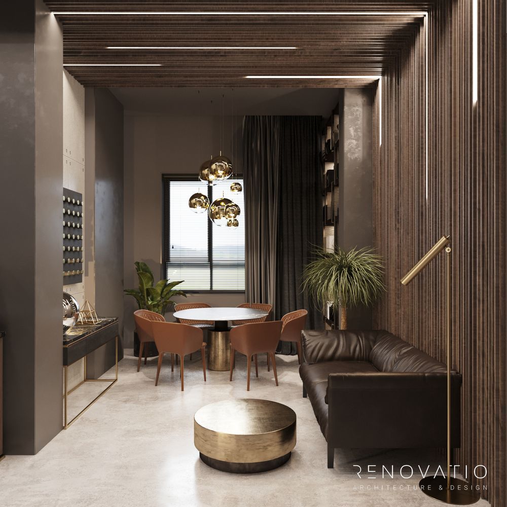 The restrained style is permeated with conceptual solutions that are dictated by the shape of the room itself. Based on various shades of gray. It does not distract, maximizes attention and improves the self-organization of employees.