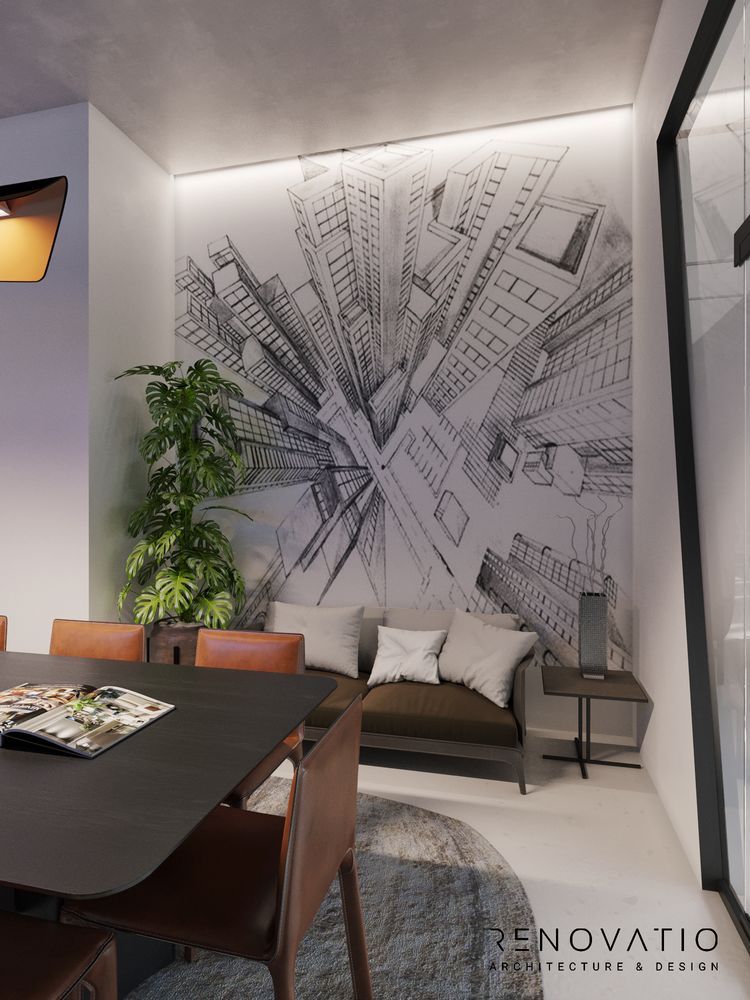 The office has its own mini gym, a small meeting room for 10 people, a dressing room and areas for easy collaboration. The interior is diluted with floral accents: indoor plants of various figurations fill the space with oxygen and freshness.