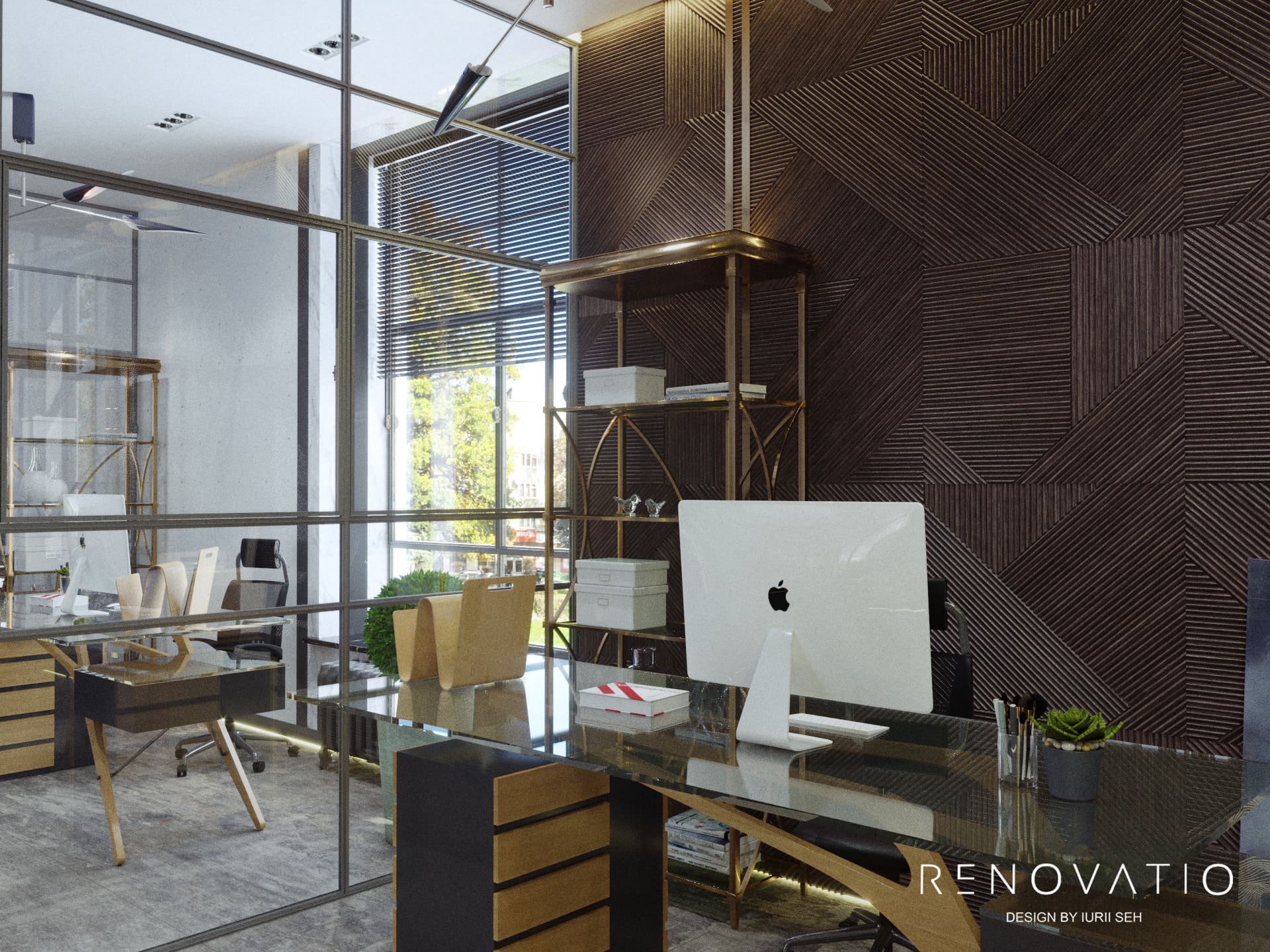 A modern office on Zhilyanskaya is a place where you want to work. The two-story office is designed in modern styles in brown and beige colors.